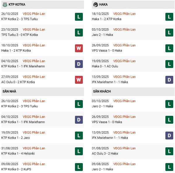 Trong khi đó, FC Haka bất bại ở 8 trận gần nhất trên mọi đấu trường, bao gồm 4 chiến thắng và 4 trận hòa. Khi xa nhà, phong độ của FC Haka cũng cực kỳ ấn tượng với 5 chiến thắng và 3 trận hòa ở 8 trận gần đây.