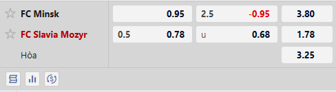Thông tin tỷ lệ FC Minsk vs Slavia Mozyr: