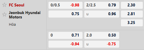 Thông tin tỷ lệ FC Seoul vs Jeonbuk Hyundai: