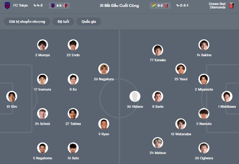 Đội hình dự kiến FC Tokyo vs Urawa Reds: