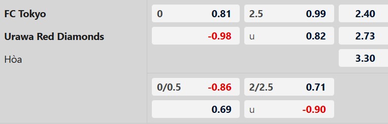 Thông tin tỷ lệ cược FC Tokyo vs Urawa Reds: