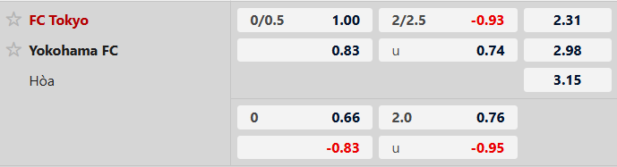 Thông tin tỷ lệ FC Tokyo vs Yokohama FC: