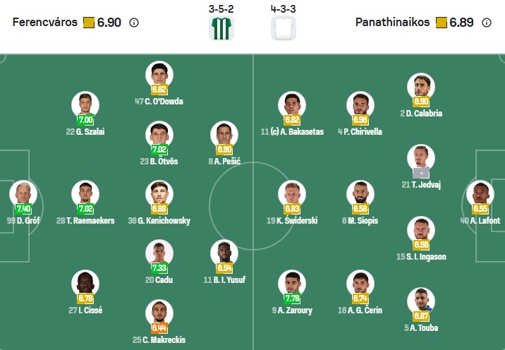 Đội hình dự kiến Ferencvaros vs Panathinaikos: