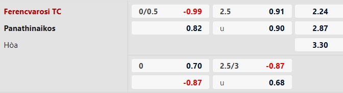 Thông tin tỷ lệ bóng đá Ferencvaros vs Panathinaikos: