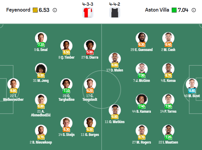 Đội hình dự kiến Feyenoord vs Aston Villa: