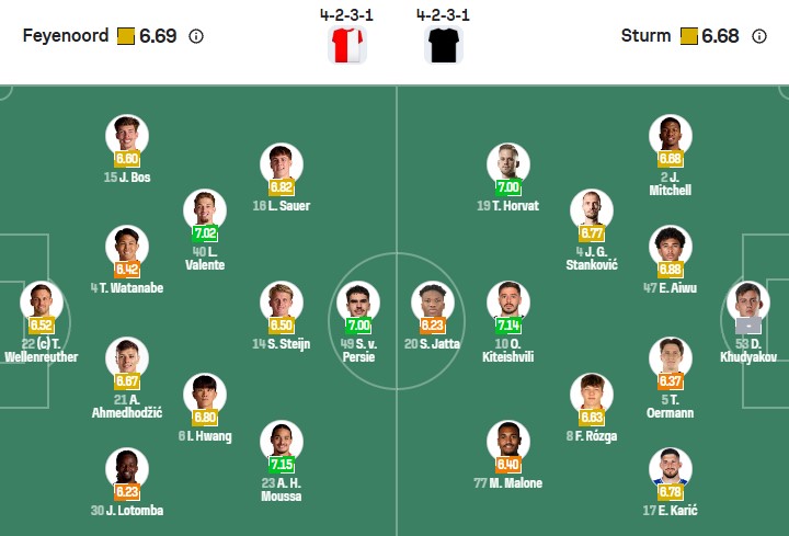 Đội hình dự kiến Feyenoord vs Sturm Graz: