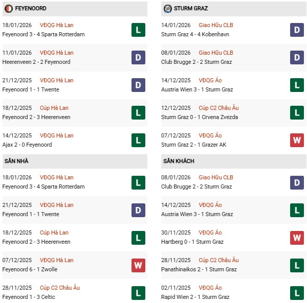 Thống kê phong độ Feyenoord vs Sturm Graz: