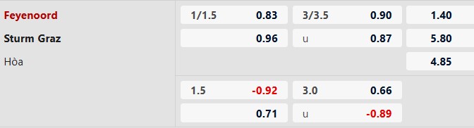 Soi kèo châu Á Feyenoord vs Sturm Graz: