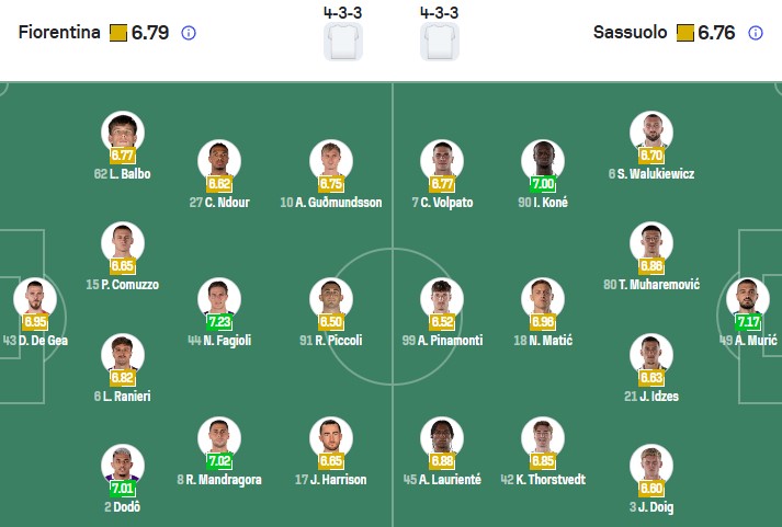Đội hình dự kiến Fiorentina vs Sassuolo: