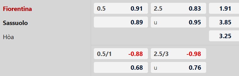 Nhận định kèo châu Á Fiorentina vs Sassuolo: