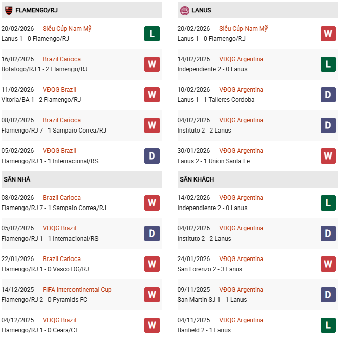 Chuỗi 18 trận bất bại trên sân nhà, gồm 13 chiến thắng và 5 trận hòa, sẽ giúp Flamengo tự tin đón tiếp Lanus và lật ngược thế cờ để lên ngôi vô địch ở Recopa Sudamericana 2026.