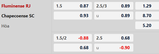 Thông tin tỷ lệ Fluminense vs Chapecoense: