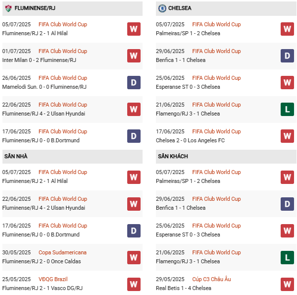 Thống kê phong độ Fluminense vs Chelsea: