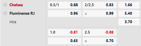 Thông tin tỷ lệ kèo bóng đá Fluminense vs Chelsea: