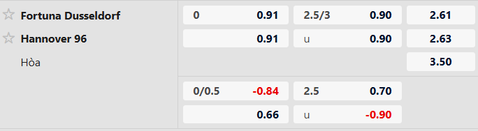 Thông tin tỷ lệ kèo Fortuna Dusseldorf vs Hannover: