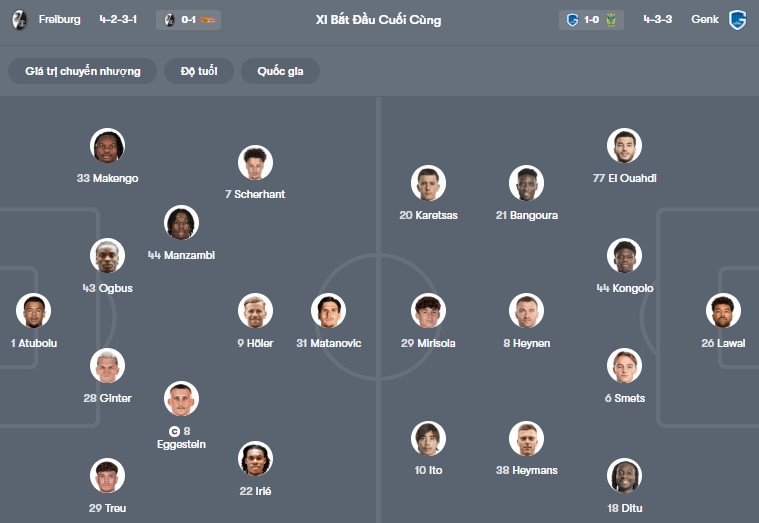 - Freiburg thua 0-1 trước Genk ở trận đấu lượt đi.