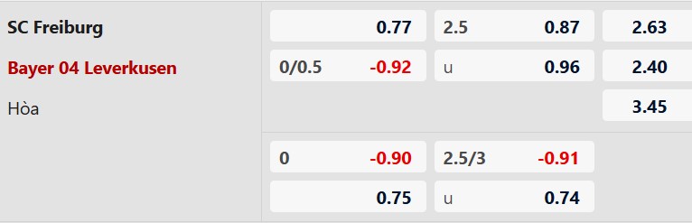 Freiburg thắng hiệp 1 theo châu Á: Trong khi Freiburg thắng hiệp 1 theo châu Á ở 7/8 trận gần nhất, thì Leverkusen lại thua hiệp 1 theo châu Á ở cả 4 trận vừa qua. Với xu hướng như vậy, các nhà đầu tư nên ủng hộ đội chủ nhà trước giờ nghỉ.