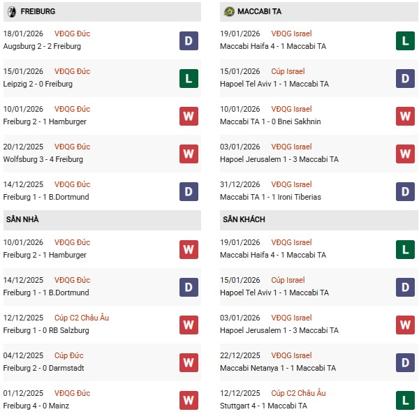 Thống kê phong độ Freiburg vs Maccabi Tel Aviv: