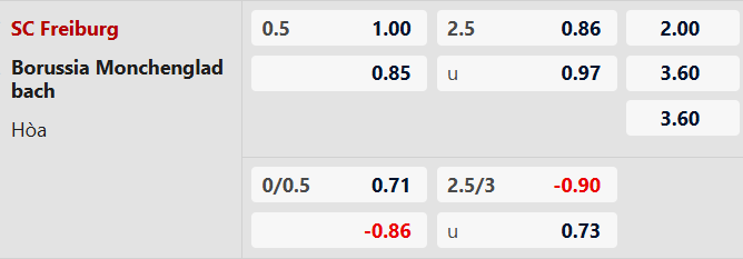 Thông tin tỷ lệ kèo Freiburg vs M'Gladbach: