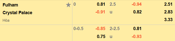 Soi kèo châu Á Fulham vs Crystal Palace: