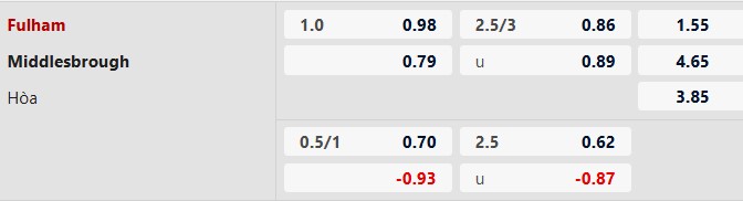 Thông tin kèo bóng đá Fulham vs Middlesbrough: