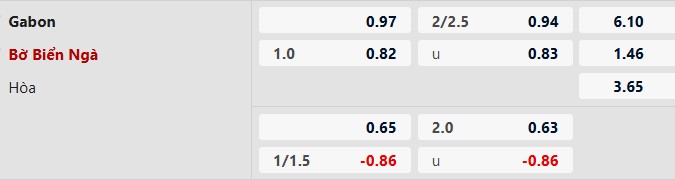 Lẻ bàn thắng: 6/9 trận so tài vừa qua giữa Gabon vs Bờ Biển Ngà có tổng bàn thắng không chia hết cho 2. Ngoài ra, 3/5 trận gần nhất của Gabon và 4/6 trận vừa xong của Bờ Biển Ngà có kết quả tương tự.
