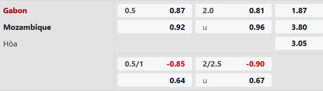 Thông tin tỷ lệ kèo Gabon vs Mozambique: