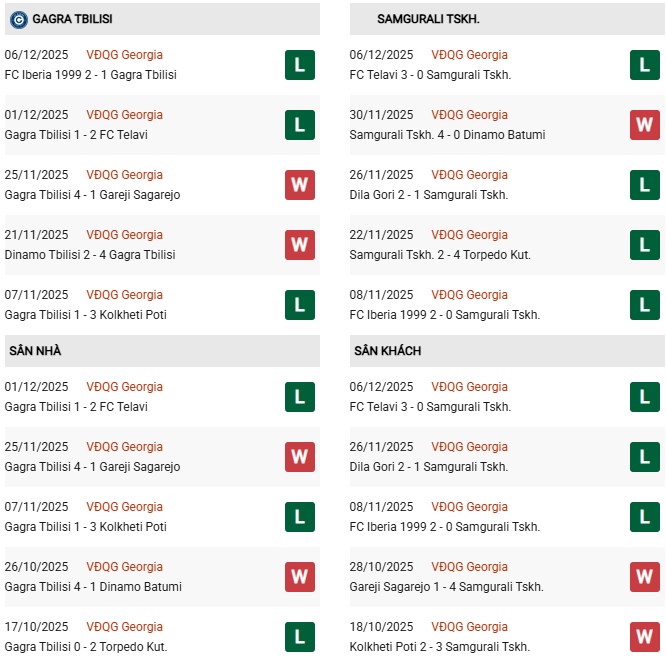 Thống kê phong độ Gagra vs Samgurali Tskaltubo:
