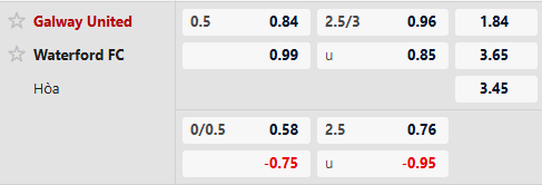 Giới chuyên gia đưa ra tỷ lệ Galway United chấp 1/2 bàn. Galway United tuy không quá nổi bật về mặt ghi bàn nhưng có phong độ sân nhà đáng tin cậy, thắng 3/4 trận gần nhất trên sân nhà tại Premier Division. Ngược lại, Waterford tỏ ra yếu bóng vía trên sân khách với chuỗi 4 trận không thắng, trong đó thua cả ba trận gần nhất.