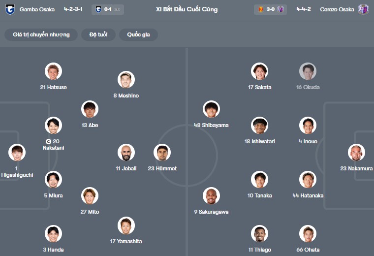 Đội hình dự kiến Gamba Osaka vs Cerezo Osaka:
