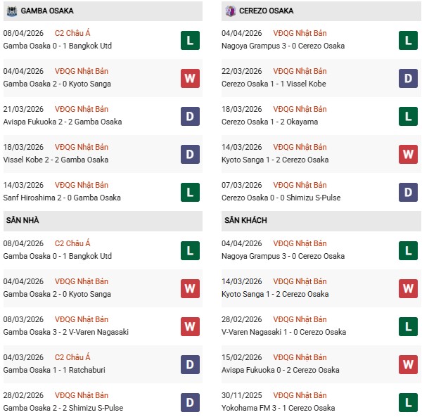 Thực ra xét thành tích từ đầu J1-League 2026, Cerezo đang kém hơn hẳn Gamba và hiện chỉ đứng trên mỗi Avispa Fukuoka tại bảng miền Tây. Song "lạ" ở chỗ cả hai thắng lợi ít ỏi mà Cerezo có được (xét 90 phút) đều diễn ra nơi đất khách dù 2/4 thất bại cũng ở các chuyến hành quân xa nhà.