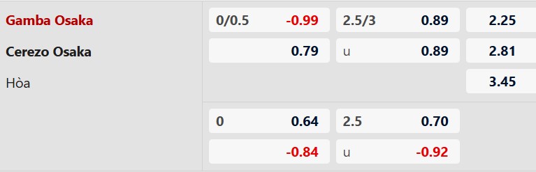 Thông tin tỷ lệ kèo Gamba Osaka vs Cerezo Osaka: