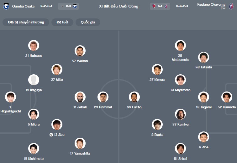 Đội hình dự kiến Gamba Osaka vs Okayama: