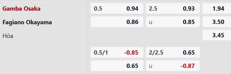 Thông tin tỷ lệ cược Gamba Osaka vs Okayama: