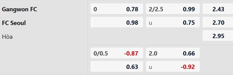 Thông tin tỷ lệ kèo Gangwon vs FC Seoul: