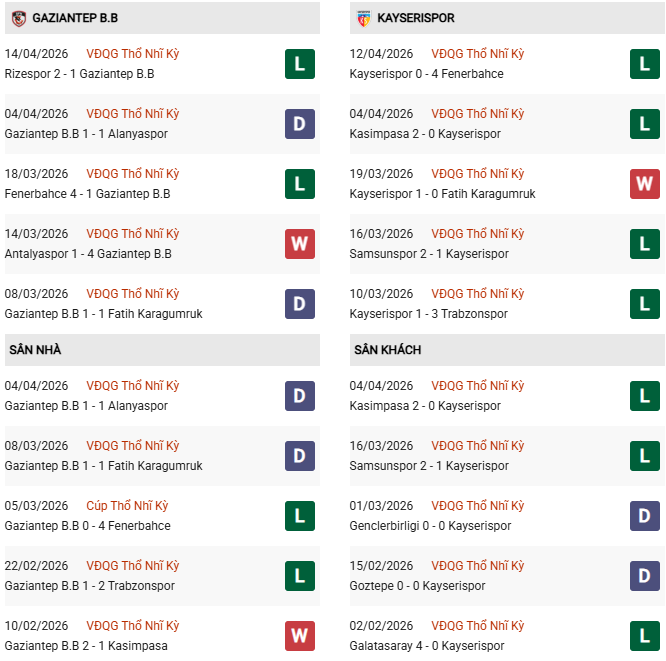 - Gaziantep thắng 2, hòa 4, thua 4 trong 10 trận gặp Kayserispor gần đây.