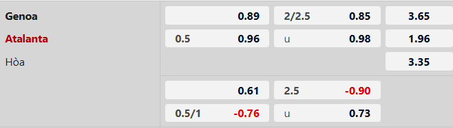 Thông tin tỷ lệ kèo Genoa vs Atalanta:
