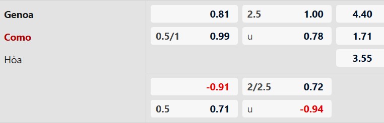 Mức chấp 3/4 bàn dành cho Como chủ yếu dựa trên vị thế bảng xếp hạng và động lực thi đấu của họ. Tuy nhiên, nhìn vào thực tế phong độ, đây là một tỷ lệ đầy rủi ro. Como đang có dấu hiệu hụt hơi rõ rệt và tâm lý căng cứng, trong khi Genoa lại đang thăng hoa với mạch thắng và có điểm tựa sân nhà vững chắc. Thống kê cho thấy Genoa đã thắng kèo châu Á ở 2 vòng đấu gần nhất, còn Como thì toàn thua cả 4 trận vừa qua. Với tâm lý không còn gì để mất, đội chủ nhà hoàn toàn có thể khiến Como tiếp tục ôm hận.