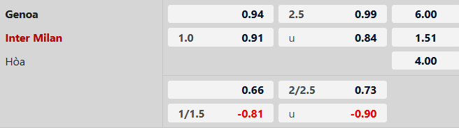 Thông tin tỷ lệ kèo bóng đá Genoa vs Inter Milan: