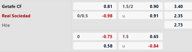 Soi kèo châu Á Getafe vs Real Sociedad: