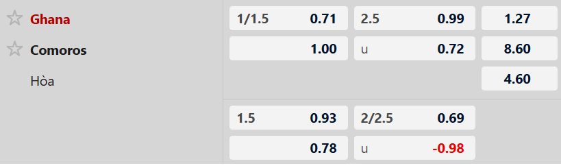 Thông tin tỷ lệ kèo Ghana vs Comoros: