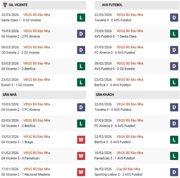 - Gil Vicente thắng 1, hòa 1, thua 1 trong 3 trận gặp AVS gần đây.