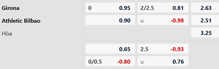Thông tin tỷ lệ cược Girona vs Athletic Bilbao: