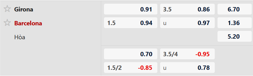 Thông tin tỷ lệ kèo Girona vs Barca: