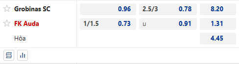 Thông tin tỷ lệ Grobina vs FK Auda: