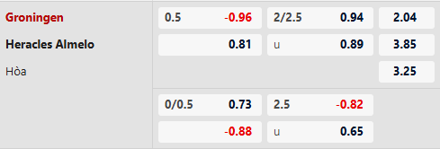 Groningen bước vào trận đấu đêm nay với thành tích rất nghèo nàn theo kèo châu Á khi không thắng 5 trận liên tiếp trên mọi đấu trường với 4 thất bại và 1 trận hòa. Trên sân nhà, Groningen cũng để thua kèo 3/5 trận đấu gần đây chấp 1/2 trái như trận này. Với Heracles, từ sau đợt tập trung quốc tế chứng kiến đội khách bất bại 3 trận với 2 trận thắng kèo và 1 trận hòa. Chưa kể, Heracles toàn thắng kèo 6 trận gần nhất được chấp 1/2 trái.