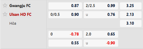 Thông tin tỷ lệ Gwangju vs Ulsan HD: