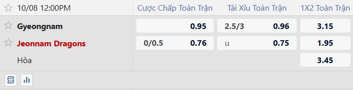 Thông tin tỷ lệ kèo Gyeongnam vs Jeonnam Dragons: