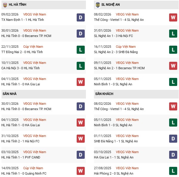 Thống kê phong độ Hà Tĩnh vs SLNA:
