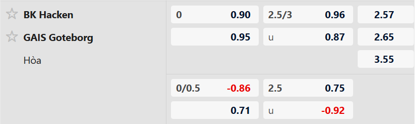Hacken đang rất có duyên với kèo châu Á 0:0 như trận đấu này, khi 3 trận gần đây xuất hiện chứng kiến họ bất bại với 2 chiến thắng và 1 trận hòa. Với GAIS, đội khách thua 3, hòa 2 ở 5 trận gần nhất mà thị trường châu á niêm yết tỷ lệ 0:0.